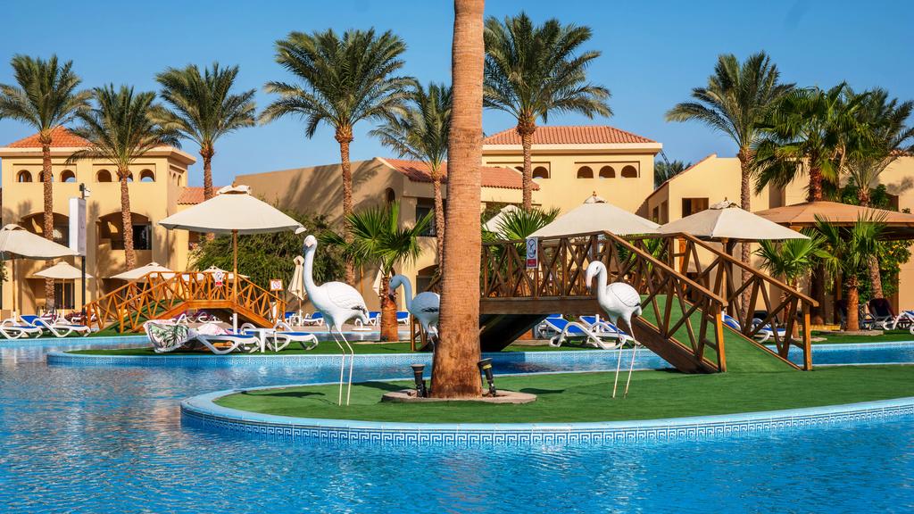 Set on a private beach along the Red Sea, Cleopatra Makadi Bay Resort is a short drive from Hurghada. The resort offers 8 outdoor swimming pools, an on-site diving center, shops, a supermarket, and a bazaar. Rooms feature warm-toned décor, cozy seating areas, flat-screen TVs, and minibars, while suites include sea-view balconies, coffee machines, and private bathrooms with bathtubs. Guests can enjoy international cuisine at the resort’s restaurants, bars, and lounges, with live entertainment available every evening for both adults and children. For relaxation, the spa provides a variety of treatments by certified professionals. The resort is approximately 10 km from Makadi Bay, 35 km from Hurghada Marina, and 30 km from Hurghada International Airport, with high-speed Wi-Fi in the lobby and pool bar (2GB free per device) and free on-site parking.