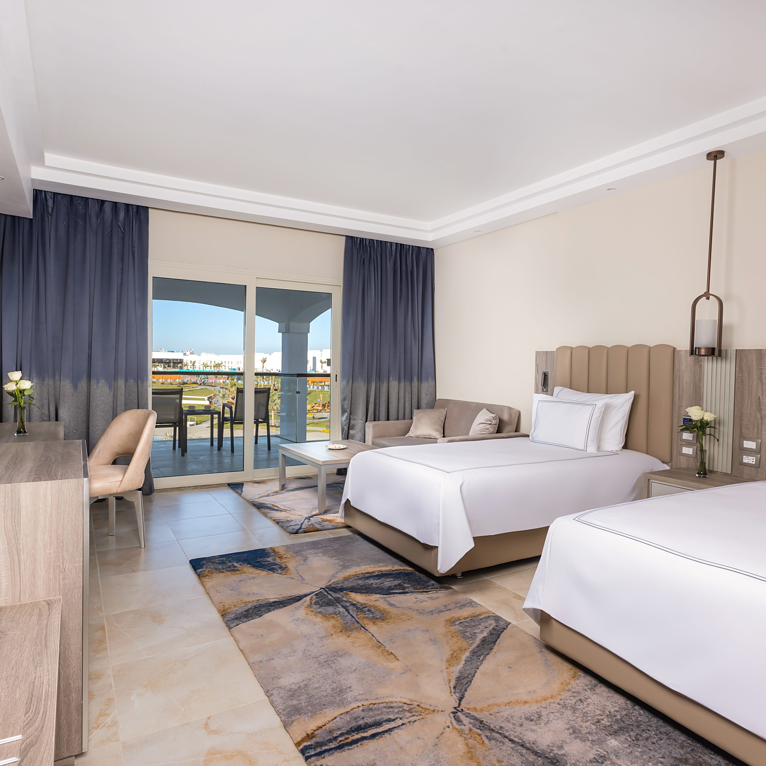 Rixos Radamis Sharm El Sheikh enjoys a prime beachfront location with a private beach and direct sea access, offering a luxurious and relaxing atmosphere. The resort features a year-round outdoor swimming pool, beautifully landscaped gardens, and a terrace with stunning sea views. Rooms are elegantly designed with air conditioning, minibar, free Wi-Fi, and premium amenities including bathrobes, soundproofing, and work desks, while family and interconnecting rooms cater to all guest types. The hotel offers diverse dining experiences with Italian, Japanese, Mediterranean, and international cuisines, along with varied breakfast options. Guests can unwind at the spa, sauna, or hot tub, stay active at the fitness center or yoga classes, and enjoy live music and a vibrant pool bar, complemented by free private parking and tour desk services.